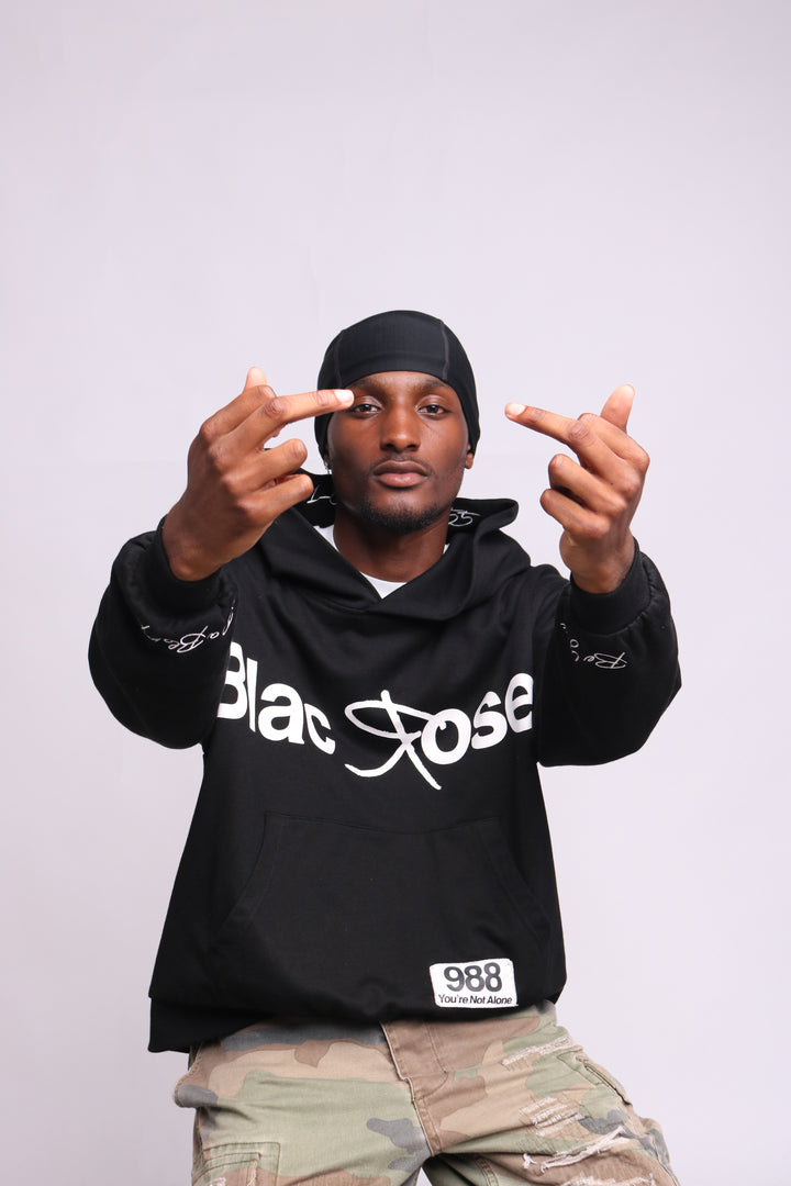 Premium 405 GSM heavyweight hoodie with oversized Blac Rose logo across the chest, motivational sleeve details, and a powerful rose graphic on the back. Featuring “988 You’re Not Alone” patch and Lifeline number embroidery for awareness. Slightly oversized fit for that perfect look.